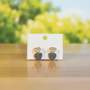 Sweet double heart studs with a sparkling crystal top and matte black bottom. Gold plated, lightweight, and protected for lasting shine. Styling Tip: Pair with cute dresses or everyday looks for a playful, romantic vibe. PRODUCT INFORMATION Material Plating Stainless Steel Gold-Plated