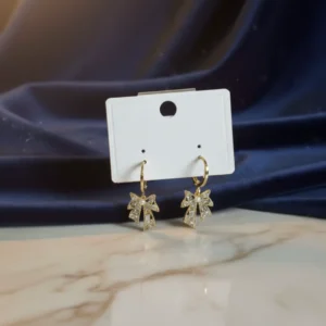 Sparkling gold bow drop earrings with crystal accents and pearl detail. Lightweight, anti-tarnish, and perfect for festive or party wear. Styling Tip: Pair with gowns, sarees, or chic dresses for a graceful, statement look.Sparkling Bow Drop Earrings – Anti Tarnish Gold-plated bow earrings adorned with crystals and a pearl center. Lightweight and anti-tarnish for lasting…
