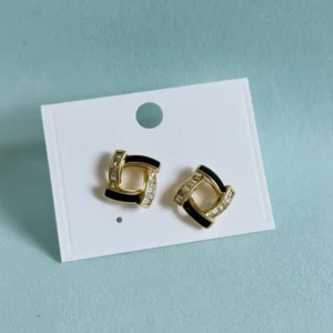 Chic geometric studs with gold plating, black accents, and sparkling stones. Lightweight and anti-tarnish for shine that lasts. Styling Tip: Pair with western or fusion outfits for a modern statement. PRODUCT INFORMATION Material Plating Stainless Steel Gold-Plated