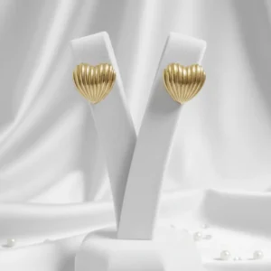 Add a touch of retro elegance with these Vintage Heart Shell Gold Plated Stud Earrings. Featuring a ribbed, shell-like texture in a romantic heart shape, these studs are perfect for adding charm to any look. Premium Gold Plating – Gives a rich, timeless glow. Anti-Tarnish Coating – Keeps them radiant and long-lasting. Textured Heart Shell…