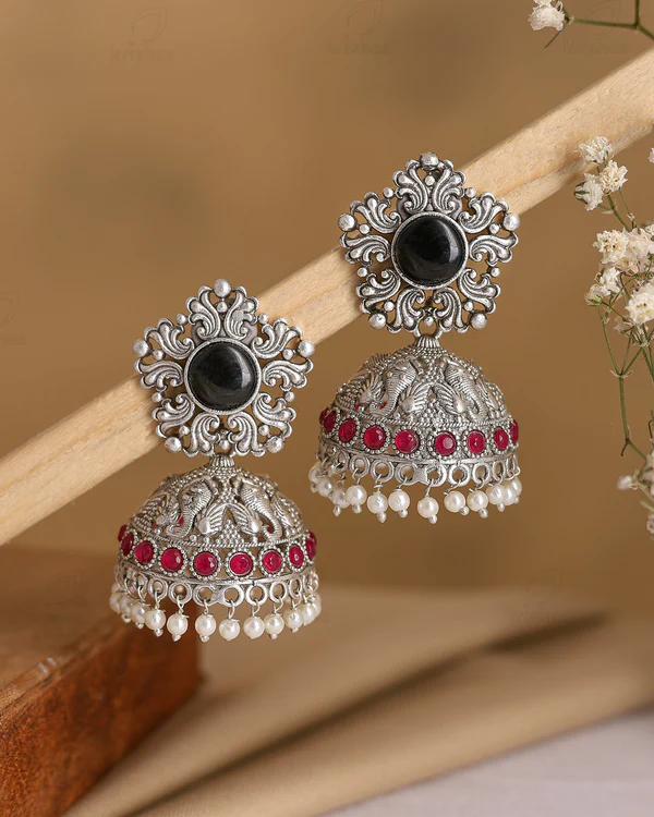Aabha Oxidised Silver Jhumka Earrings