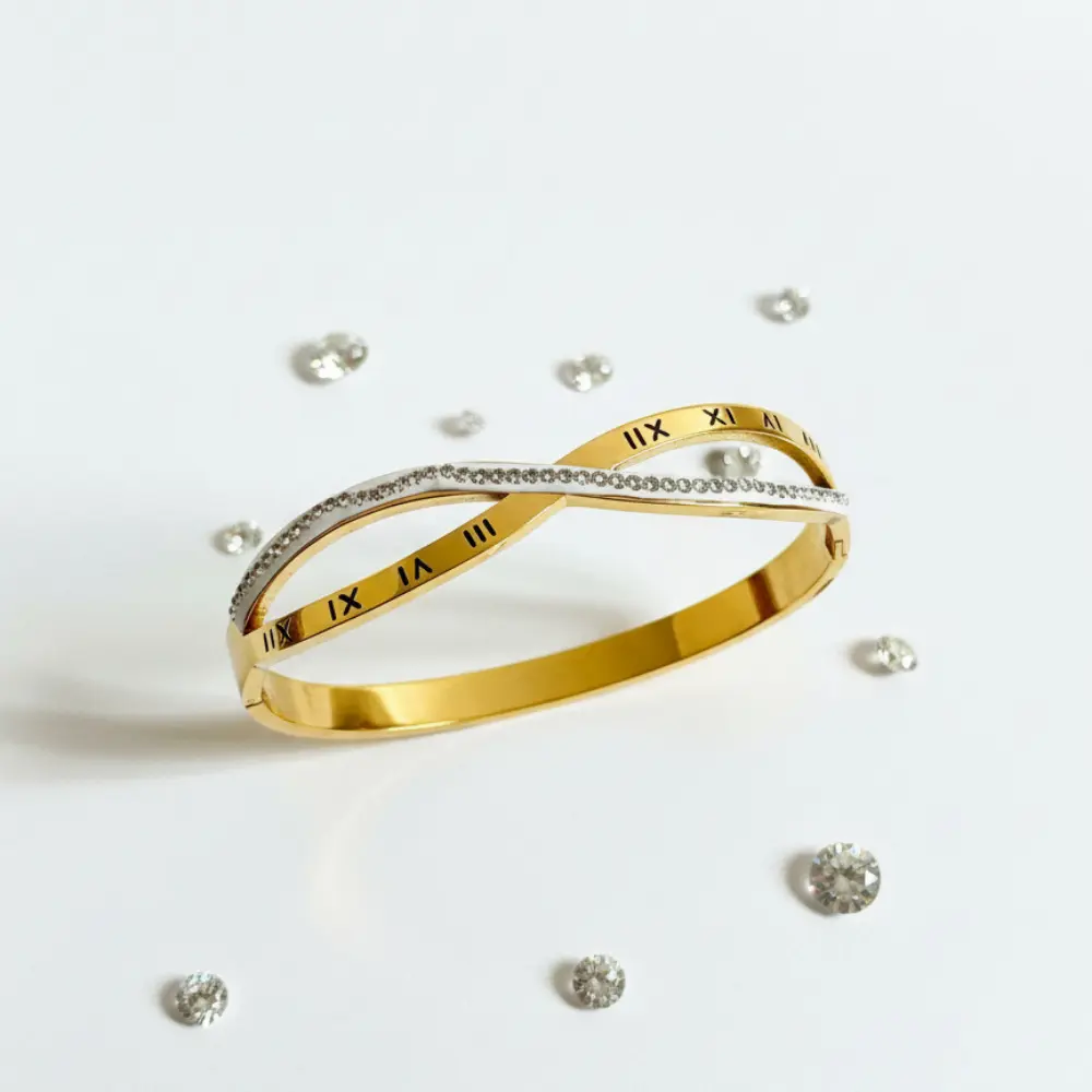 Dual Layer Roman Numeral Kada Bracelet – Gold Plated & Anti Tarnish
