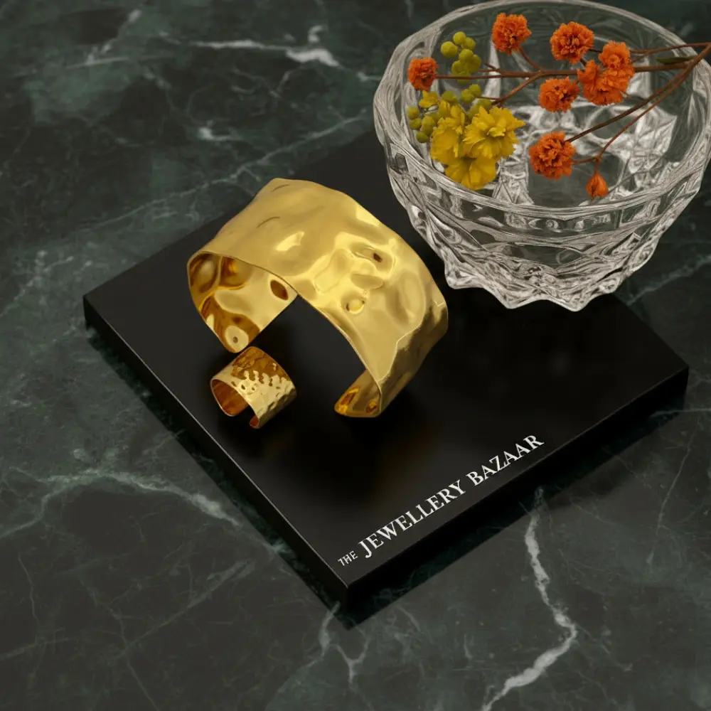 Hammered Gold Plated Cuff Kada & Ring Set – Artistic, Adjustable