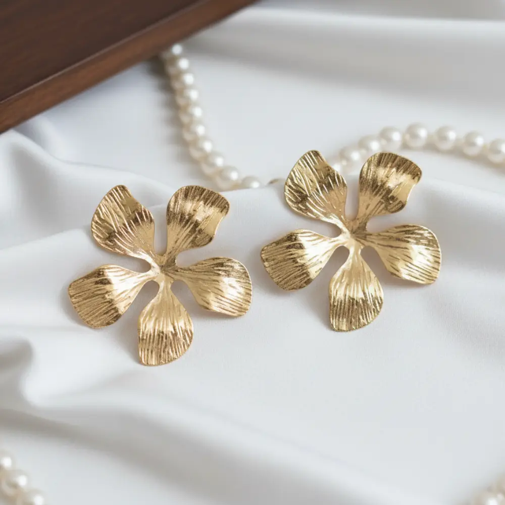 Statement Floral Gold Plated Earrings – Anti Tarnish