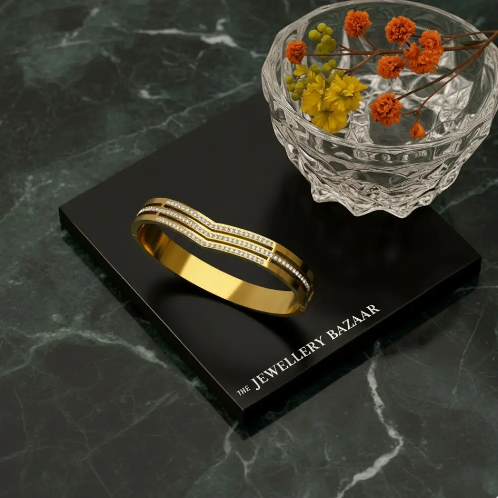 Triple Layer Diamond Cut Kada Set – Gold Plated, Sparkling, Anti Tarnish
